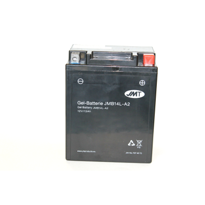 BATTERIA GEL JMB 14 L-A2 SIGILLATA AD ELEVATO SPUNTO PER AVVIAMENTO ELETTRICO TEMPI DI SCARICA 4 MESISI ELIMINA IL SOLITO PROBLEMA DELLA FUORISCITA DI ACIDOIL TUBO DI SFIATO VIENE ELIMINATOSPECIFICA PER I SEGUENTI MODELLI: HONDA CB750 FOUR TUTTE LE VERSIONI HONDA CX 500 TUTTI HONDA FT 500 HONDA CX 650 E- TURBO HONDA CB750F BOL DOR HONDA CB900 F-FC BOL DOR ------------------------------------------------------------ KAWASAKI: KL-KLR 650-GPX-R 750 86-89-VN VULCAN 750-Z750B 76-78-Z1000 77-80 ------------------------------------------------------------ SUZUKI: GS 650 81-82-LS 650 SAVAGE 86-05 GSE 750 83-GS S 750 KATANA 83 GSX E-ES 750 82-88-GSXR 750 85-91 GS 850 79-83-GS1100 82-84- GSXF-R 1100 88-93 ------------------------------------------------------------ YAMAHA: TX 500 73-74-XS 500 75-78-XZR 550 82-83 TX 650 74-XJ-XS 650 81-FZ -FZX 750 85-90 XJ-750-900 82-85-FZR1000 87-90 FJ1200 86-92MERCE NUOVA E FATTURABILE